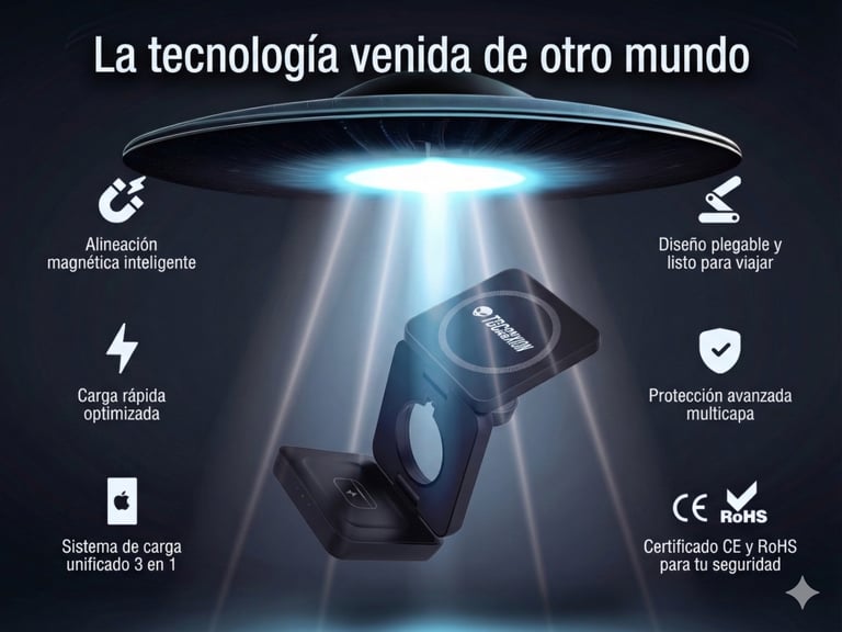El cargador inalámbrico magnético 3 en 1 de nueva generación — porque cargar todos tus dispositivos no debería ser un drama.