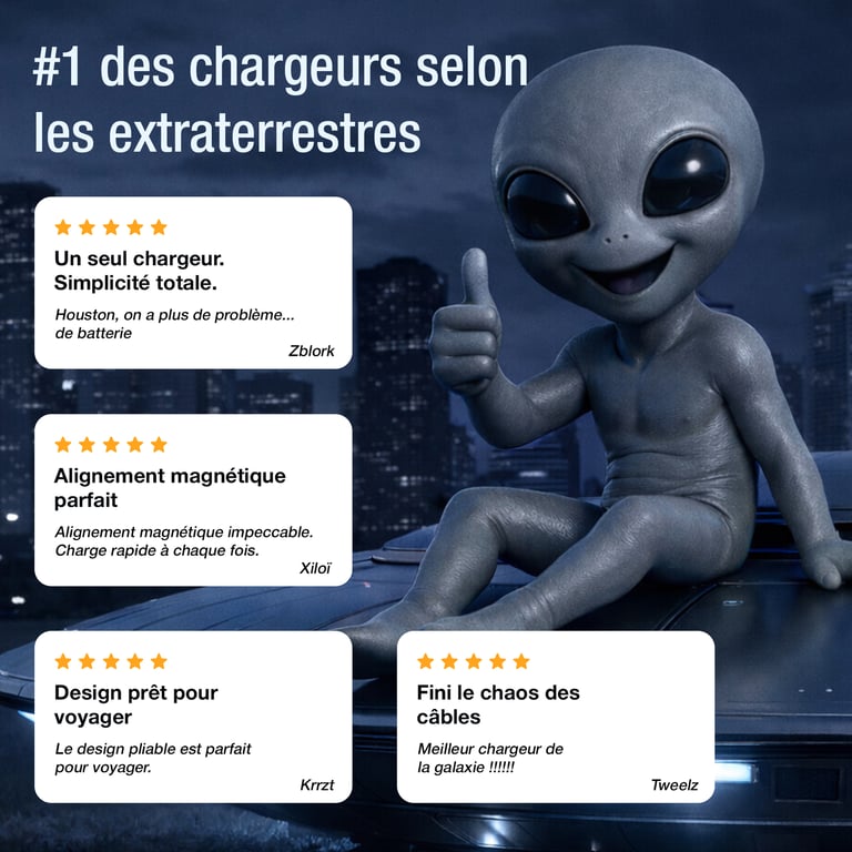 Rejoignez des milliers de clients satisfaits avec notre chargeur 3-en-1.